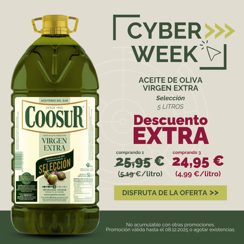 Cada vez sois más los que os preocupáis por llevar una alimentación sana y equilibrada, pero disponéis de poco tiempo para realizar vuestras compras. Por ello, puedes adquirir nuestros productos de aceites de oliva virgen extra, salsas saludables y vinagres o acercarte a la gastronomía de otras culturas con los sabores del mundo en nuestra tienda online. Una forma sencilla, rápida y segura de disfrutar de tus productos favoritos sin salir de casa y con la garantía de origen que ofrece Coosur.