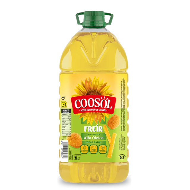 El Aceite de Girasol Coosol Especial Freír destaca por su tono amarillo brillante y por estar elaborado a partir de pipas de girasol alto oleico seleccionadas con rigor. Gracias a su proceso de refinado y a su contenido natural en antioxidantes como la vitamina E, ofrece una fritura más estable y un resultado ligero y sabroso. Una opción ideal para quienes buscan un aceite fiable, saludable y de excelente rendimiento en cocina.