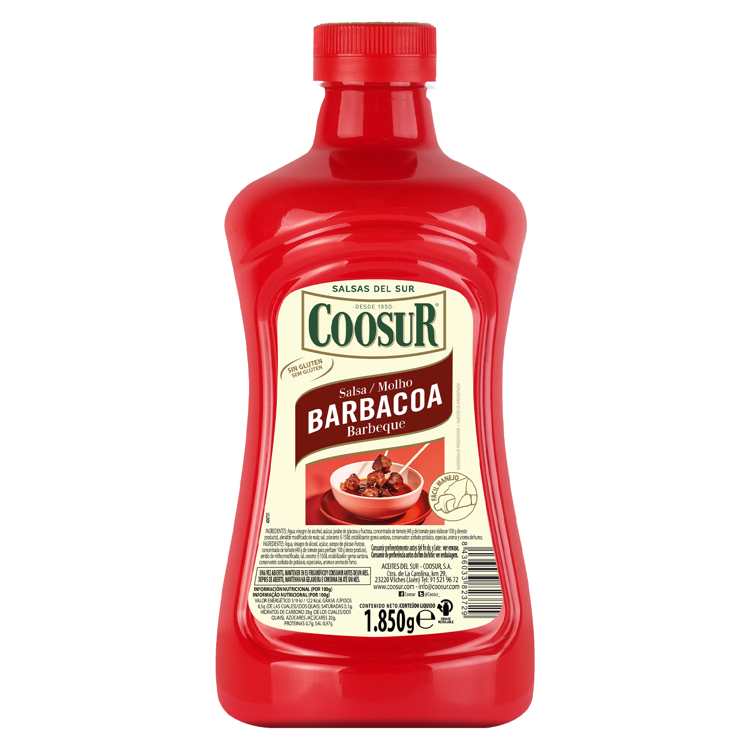 Zutaten: Wasser, Alkoholessig, Zucker, Glukose-Fruktose-Sirup, Tomatenkonzentrat (48 g Tomaten zur Herstellung von 100 g dieses Produkts), modifizierte Maisstärke, Salz, Farbstoff: E-150d, Stabilisator: Xanthan, Konservierungsmittel: Kaliumsorbat, Gewürze und Aroma.
