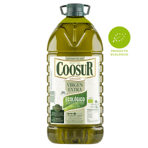 El aceite de oliva virgen extra ecológico Coosur de 5 litros es un producto de alta calidad elaborado a partir de aceitunas cultivadas de manera sostenible y prensado en frío, resaltando así por su pureza y delicioso sabor.
